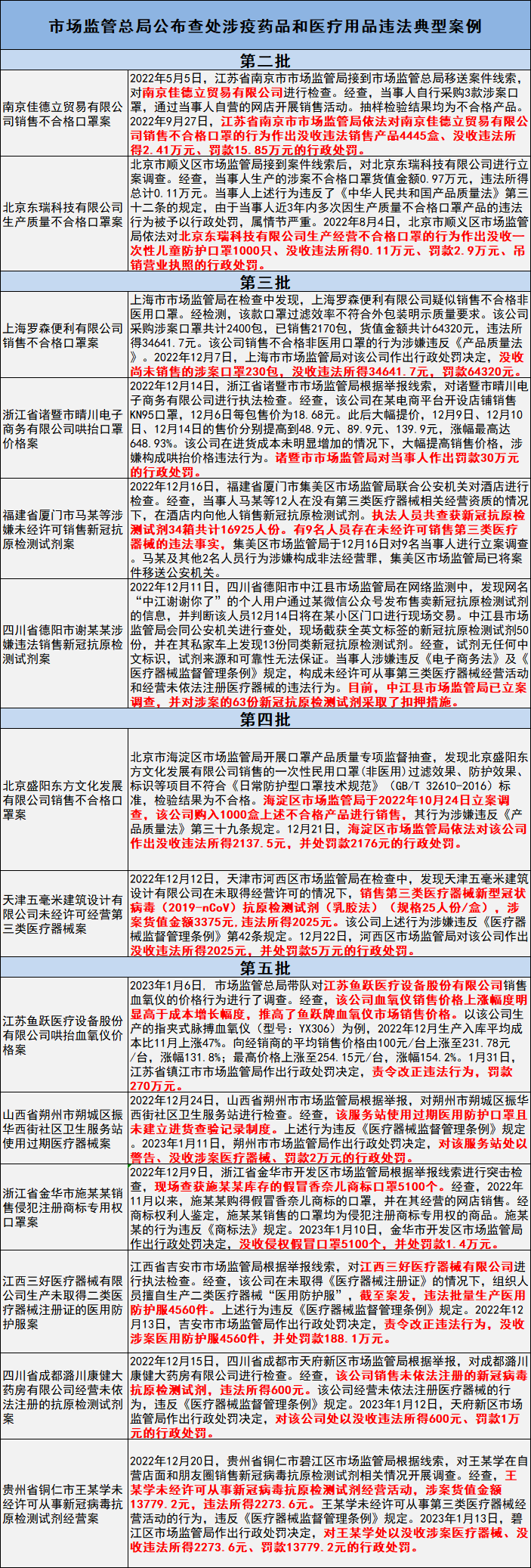 自去年12月至今,国家市场监督管理总局已经发布了5期《公开查处涉疫药品和医疗用品违法典型案例》,其中14起是疫情防控医疗器械违法案例,查处品种从医用口罩、抗原试剂逐步扩大至血氧仪。