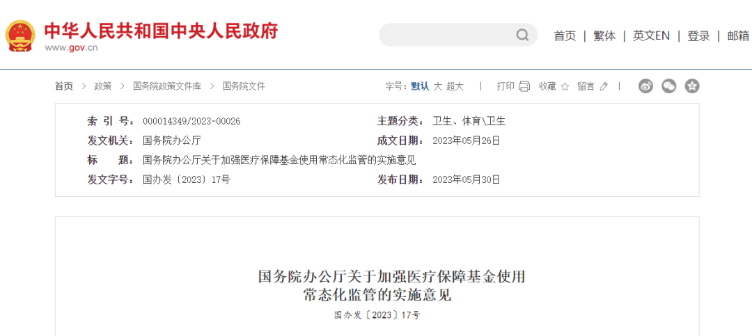 国务院办公厅关于加强医疗保障基金使用常态化监管的实施意见