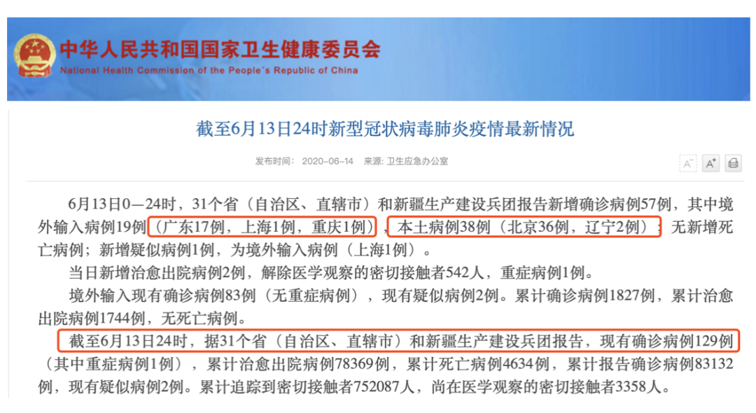 截至6月13日24时,据31个省(自治区、直辖市)和新疆生产建设兵团报告,现有确诊病例129例(其中重症病例1例)。